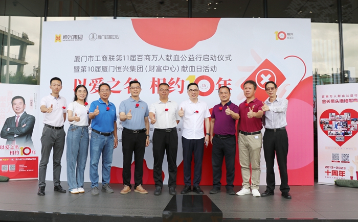 晨間風起,如約奔赴!7月26日,廈門市工商聯(lián)第11屆百商萬人獻血公益行啟動儀式暨第10屆恒興獻血日活動順利舉辦。活動由廈門市工商聯(lián)、廈門市中心血站、廈門恒興集團主辦,本次主題為“以愛之名,相約10年”。在超強臺風杜蘇芮或?qū)⒃斐捎绊懙那跋Γ刂廉斎?5:00,廈門財富中心會場和寶拓大廈會場共有258人報名參與,181人成功獻血,當日獻血量47500毫升。至此,恒興獻血日10年累計總獻血量達487140毫升。